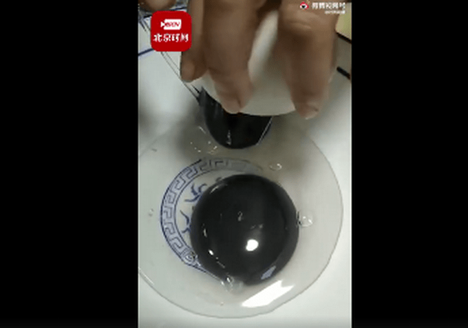 The intriguing photos and videos of the black eggs were posted on Sina Weibo last week by a man surnamed Zhu from Hangzhou City, in China’s Zhejiang Province. He claimed that the eggs came from a friend of his who kept many grey geese on his farm, and who had gifted him batches of normal goose eggs before. Only this time, what looked like ordinary eggs of standard size and white color turned out to be somewhat of an oddity. When cracked, the eggs revealed a clear egg-white, but a dark grey, almost black yolk, instead of the normal yellow or light orange.