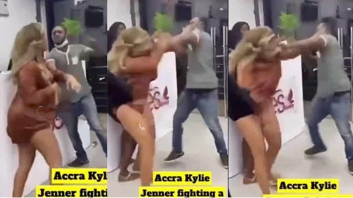 A Ghanaian big girl popularly known as ”Accra Kylie Jenner” has been captured on camera fighting a cab driver over the fare charges she was given.
