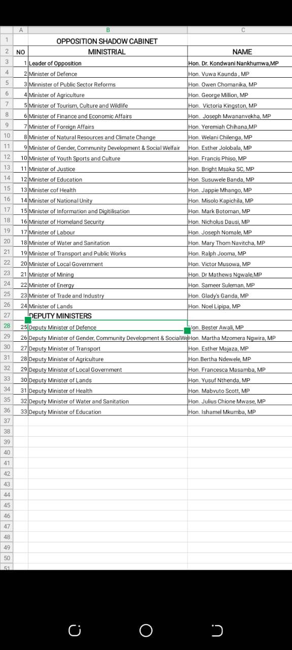 Leader of Opposition in Parliament Kondwani Nankhumwa who is also Democratic Progressive Party (DPP) Vice President for the South Kondwani Nankhumwa has named his 33-member shadow cabinet surpassing that of President Dr. lazarus Chakwera.