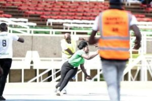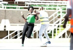 In Kenya, a girlfriend of a footballer ran on the pitch with stone to injure a player that hurt her boyfriend.