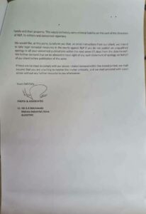 ” We have seen the letter that you have written, demanding an apology from NPL Journalists who you claim are misreporting issues connected to you within the seven days. I Bon Kalindo also giving you the same seven days to withdraw the letter and if you fail to do so, I will organize demonstrations that we will go and march at your house.