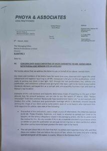 ” We have seen the letter that you have written, demanding an apology from NPL Journalists who you claim are misreporting issues connected to you within the seven days. I Bon Kalindo also giving you the same seven days to withdraw the letter and if you fail to do so, I will organize demonstrations that we will go and march at your house.