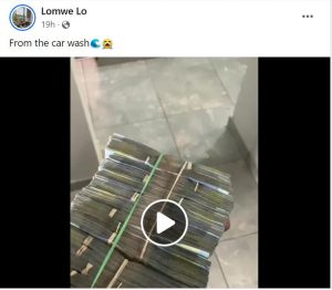 Lomwe real name ‘Tendai Namate’ recently posted on his Facebook page in what looks like a jab back at Tay, showing off money he’s supposedly making from his car wash.