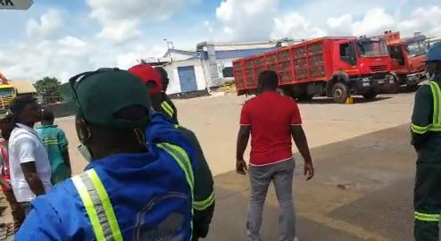 The disgruntled employees have since sealed the main entrance pallets of crates. Some of the employees are chanting songs in anger.