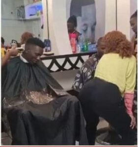 In Nairobi city, a woman has been employed to entertain male clients who come to get haircuts at a barbershop in Kumasi.