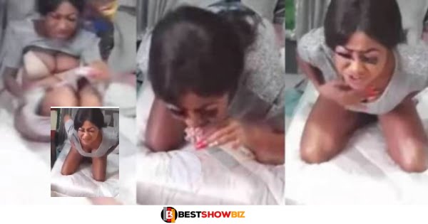 In a viral video, a pretty young lady who has been identified as Akosua Sali, is seen vomiting money just minutes after coming from her boyfriend’s house.
