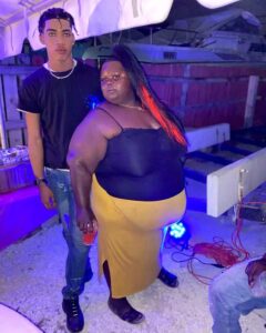 According to the photos that we have seen, lady is naturally oversize, she is very fat while the boyfriend is slim.