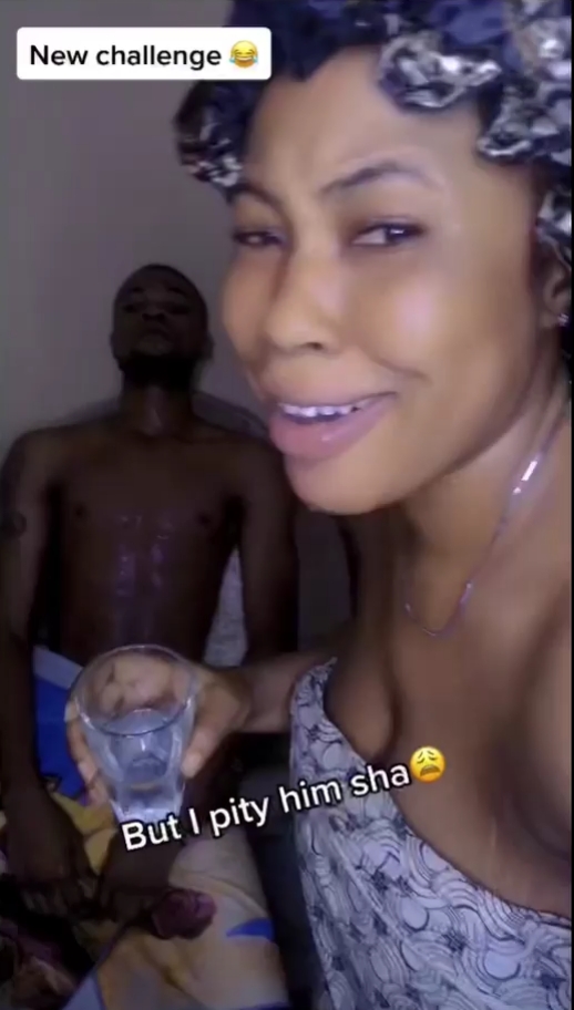 In the video which was captioned: “But I pity him sha“, the man was seen looking tired, sweating and panting on a chair as she revealed that the sex they had just had was what left him in that state.