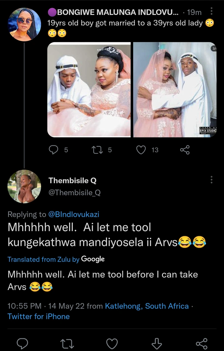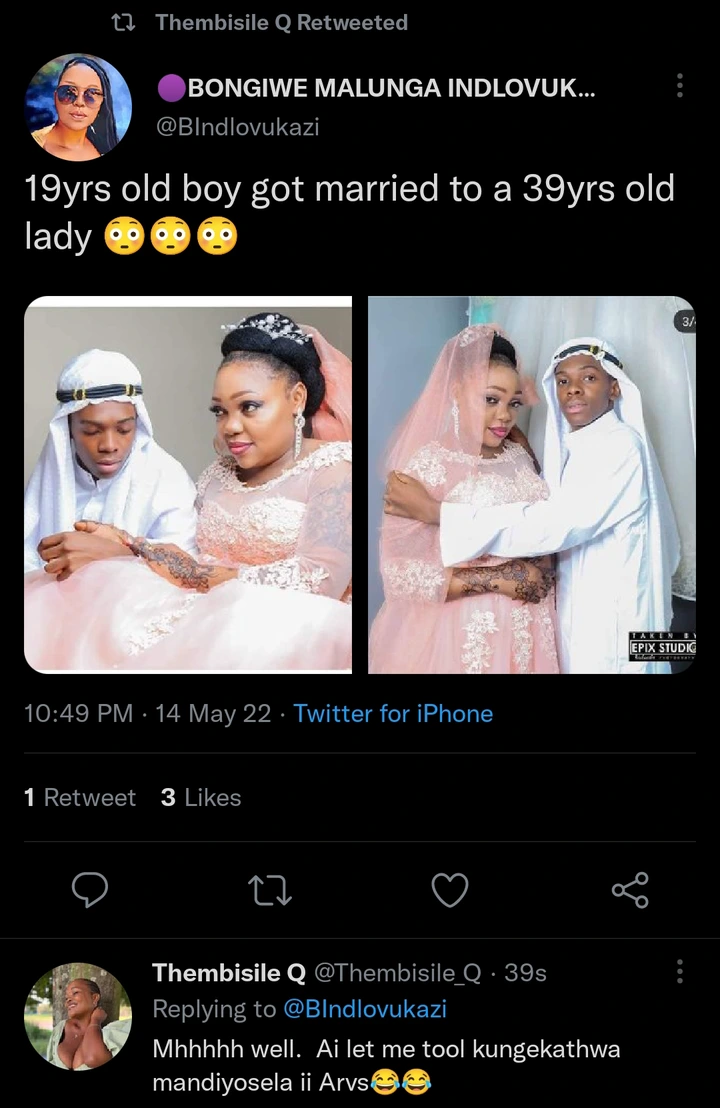 News making round on social media is what some people are describing as love at its peak, or better still a movie. It’s been reported that a 19 years old teenager has decided to marry his 39 years old lover. This implies that the woman is almost 20 years his senior. Some people cannot fathom why the marriage took place, as someone posted, “19yrs old boy got married to a 39yrs old lady”.