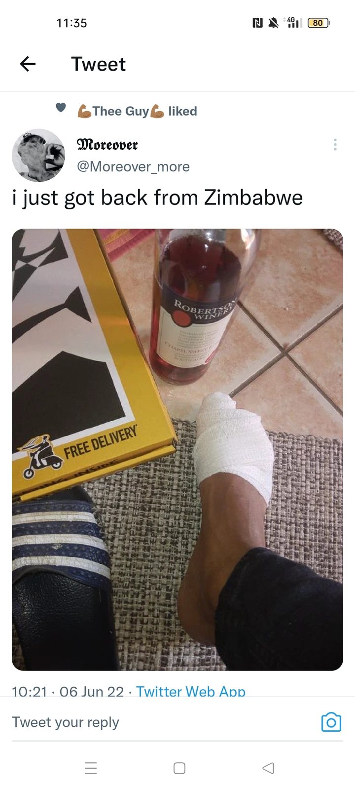 Despite the rumours being denied people can’t help it but make jokes about the issue, like this one who has a bandage on his toes claiming his coming from Zimbabwe.