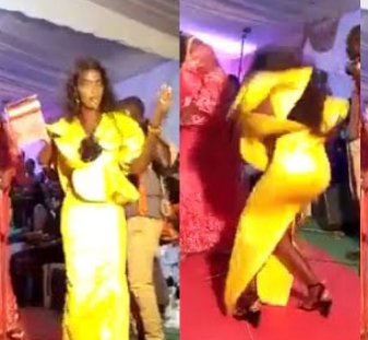 Watch; Lady Shows Her Raw Backside After Her Dress Torn Out While Dancing At A Wedding