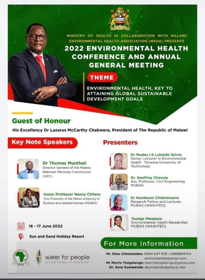 The conference which is scheduled to run for two days from June 16 to 17, has been organized by the Ministry of Health in Collaboration with Malawi Environmental Health Association.