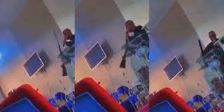 A Nigerian Pastor has been spotted in a viral video showing off his gun in church.