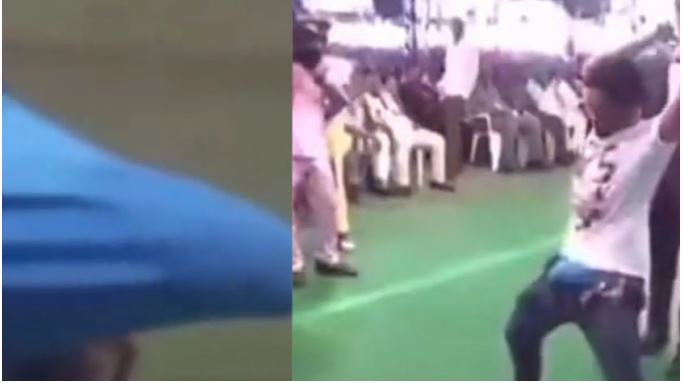 In a video shared on social media, the guy who is probably suffering from priapism could be spotted working very hard to keep his gbola down, in front of several other members of the church.