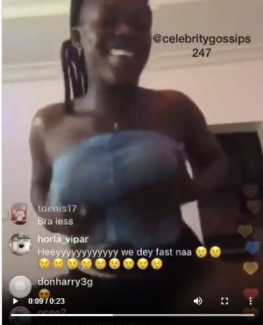 The slay queen eagerly declares while showing off her sensual bare breast on her Instagram live while shaking her translucent breast online, she remarked in the live video “my bre-ast on live, I am very proud of my breast.”