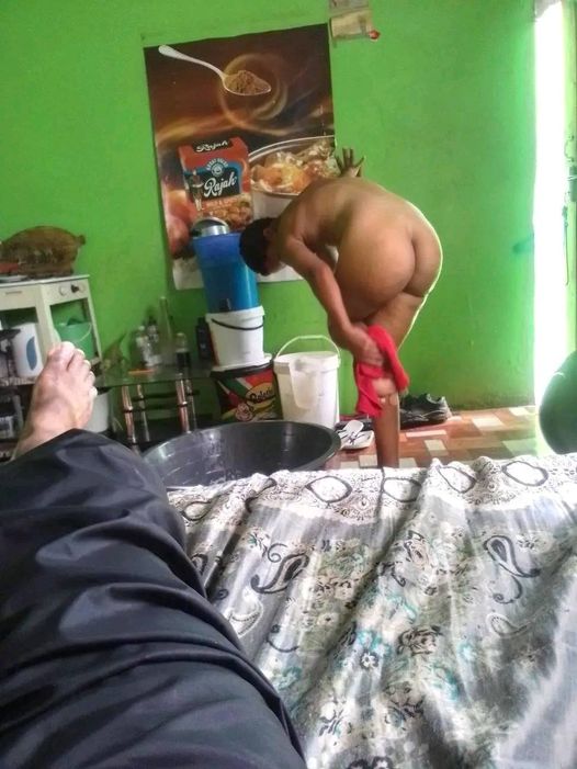 The latest being a photo of slay Queen taking a bath on the sitting room while her boyfriend watching from a distance.