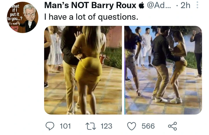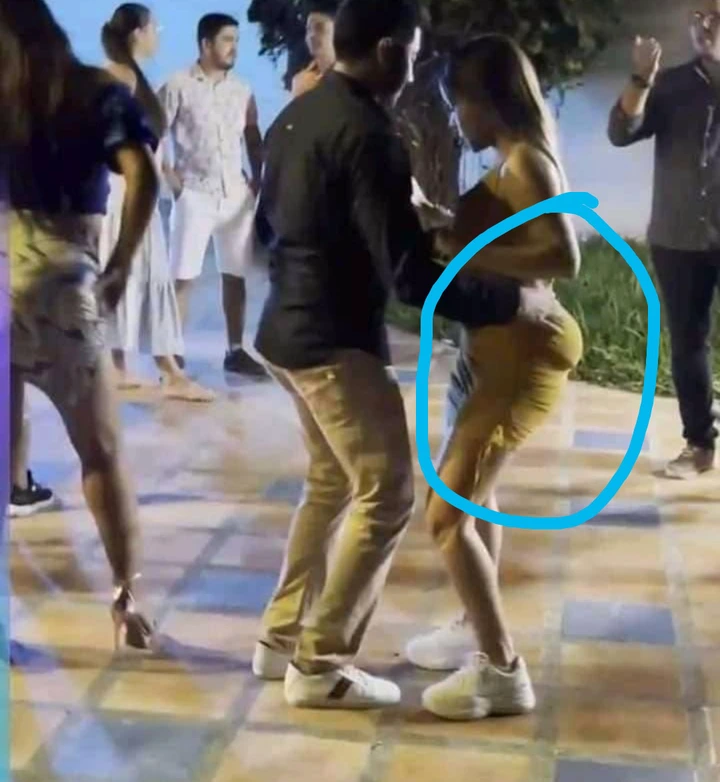 It is clear from the photographs that this woman and her companion were out having fun and dancing when the camera was pointed their way. Then all of a sudden, this lady’s artificial bums started losing shape, and people realized that “I have a lot of questions” was written by an influencer once they observed that artificial bums.