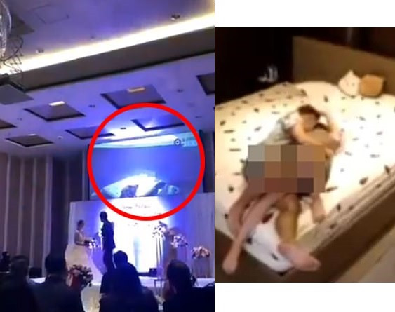 In the viral video, the emcee is heard telling the crowd ‘now we are going to show you the videos of how the newlyweds grew up’. But seconds later, an X-rated video starts playing from the projector.