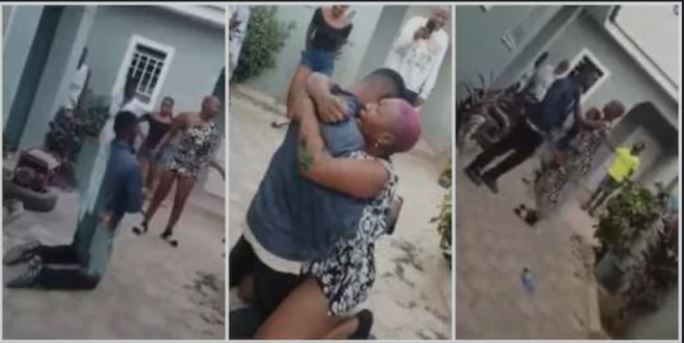 In the viral video, the man and his girlfriend were seen exchanging words as neighbours came out to settle their quarrel, and then the man slapped the lady.