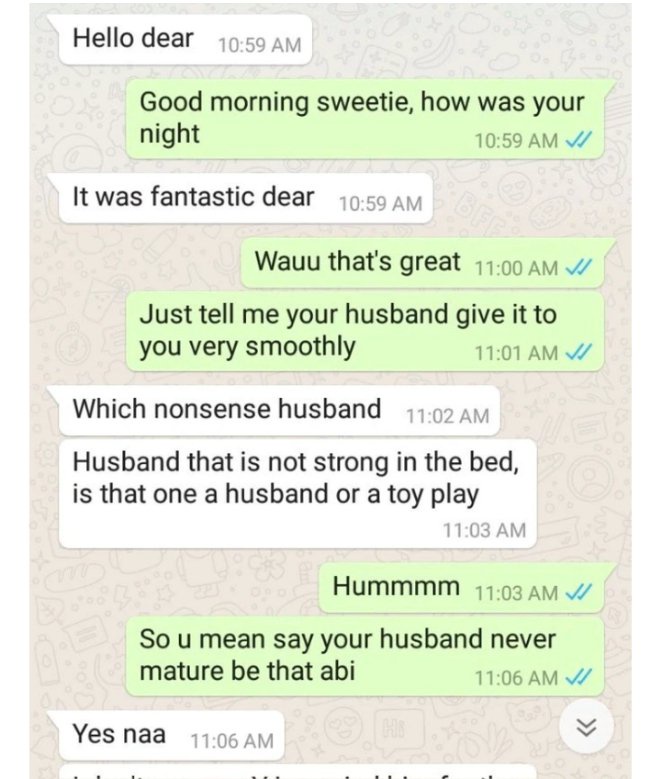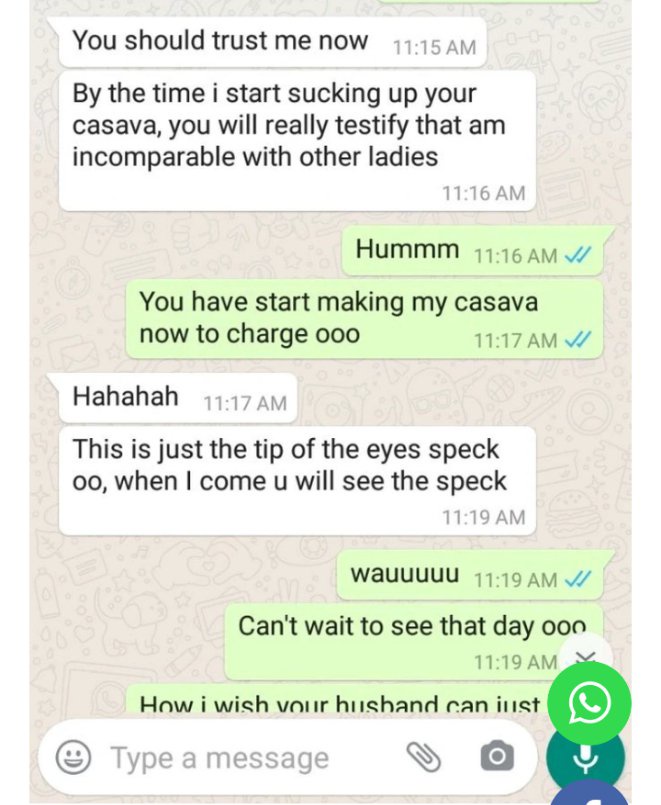 Screenshots; Side Dude Leaks WhatsApp Chat With Married Woman Who’s Cheating On Her Husband Exposing The Man’s Weakness In Bed