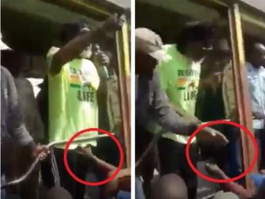 The Roots party flagbearer jumped back, while his security detail also swung into action, forcing the woman to quickly withdraw her hand.