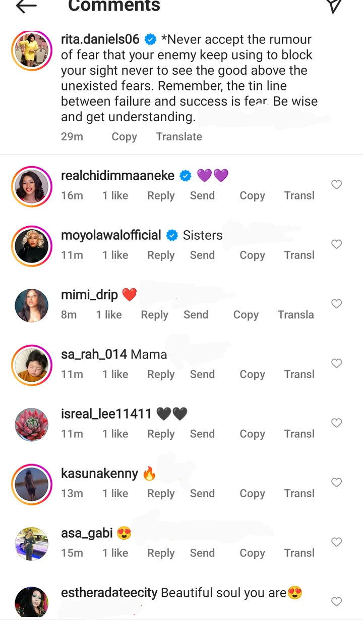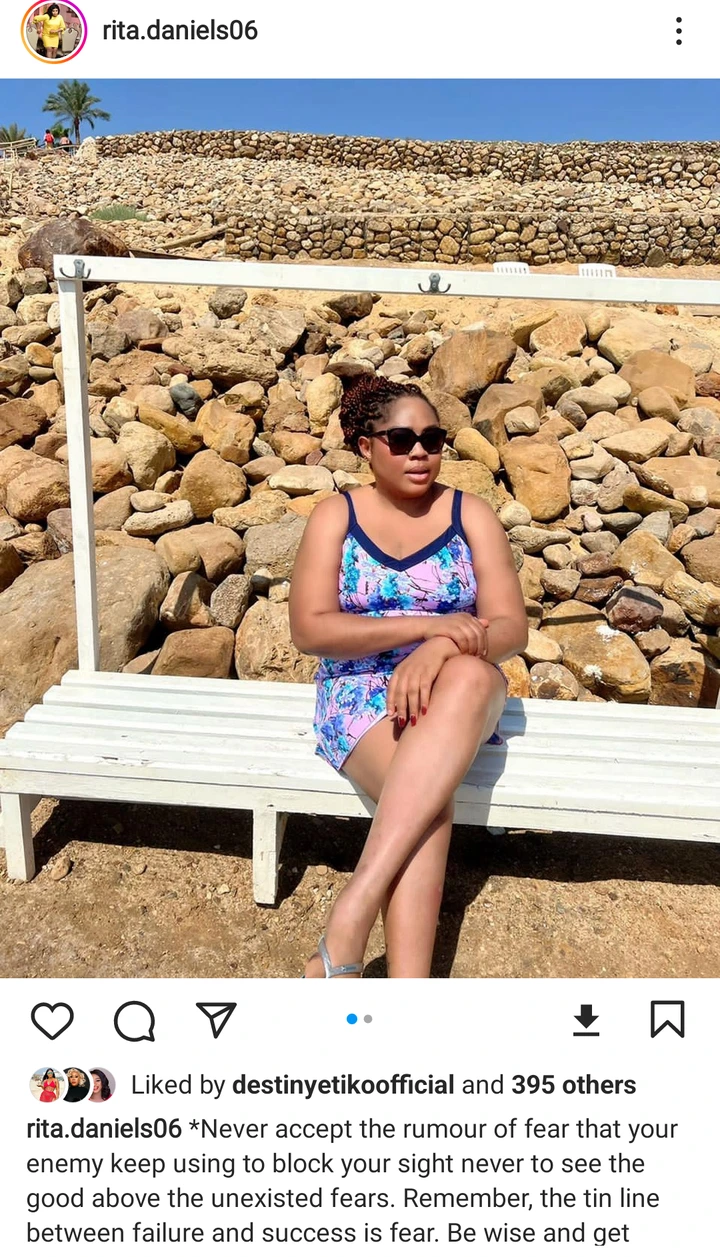 She wrote a long caption where she gave a valuable advise to her followers. She said, “Never accept the rumour of fear that your enemy keep using to block your sight never to see the good above the unexisted fears. Remember the tin line between failure and success is fear. Be wise and get understanding.”