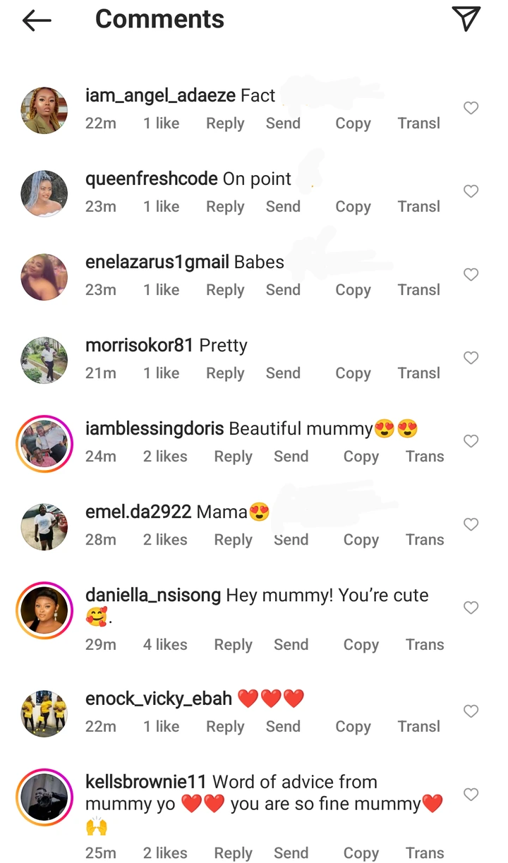 Her caption alongside her pictures caught people’s attention as some of her followers reacted quickly to them. Many of the people who reacted were full of praise for the statement in her caption, as they found it to be a good piece of advice.