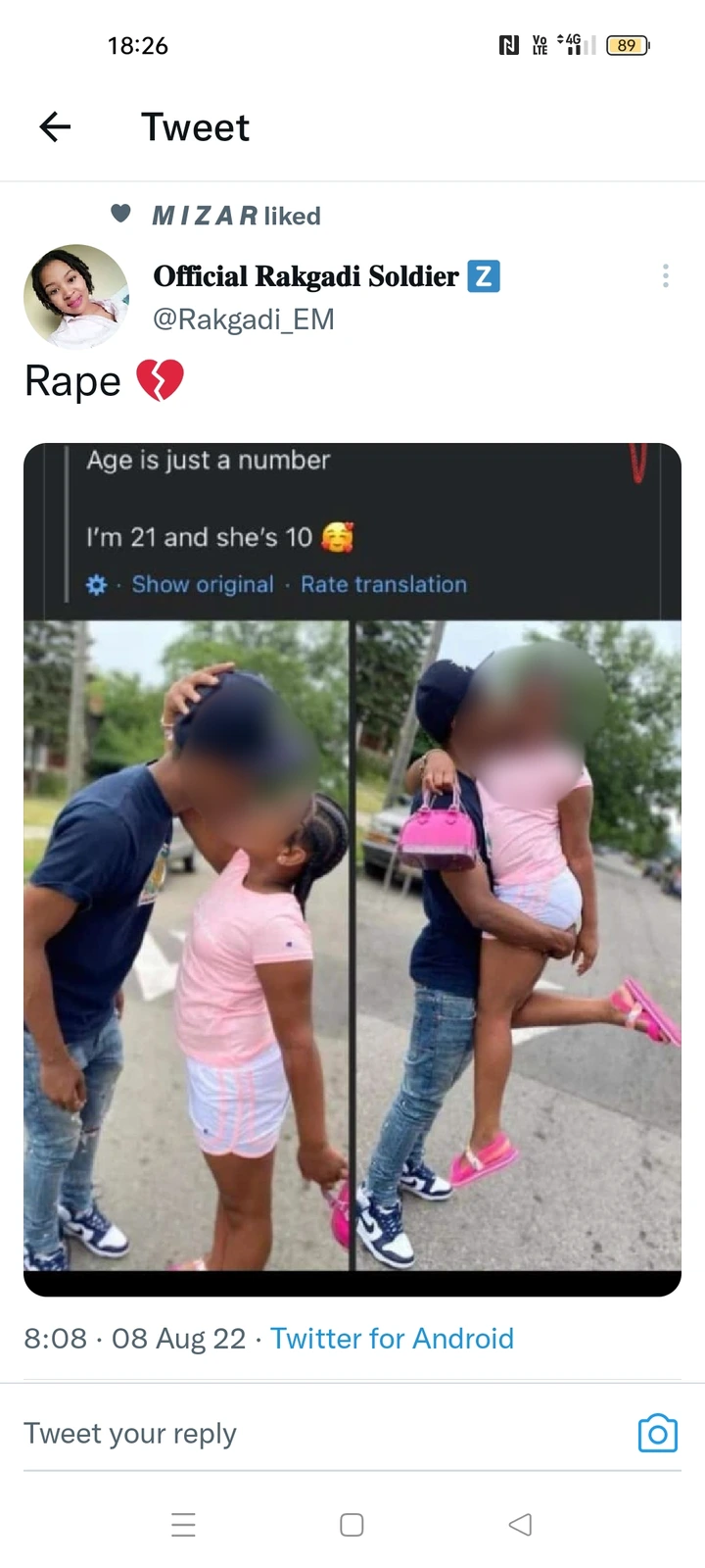 This brings me to this 21 year old man who is allegedly dating a 10 year old girl, it is unclear how their relationship came about or were are the parents of the young child, this caused a stir on social media were in people were so angry on how could this be, but in some culture is not that uncommon to find such relationships were in an old man would may a girl under 15 years