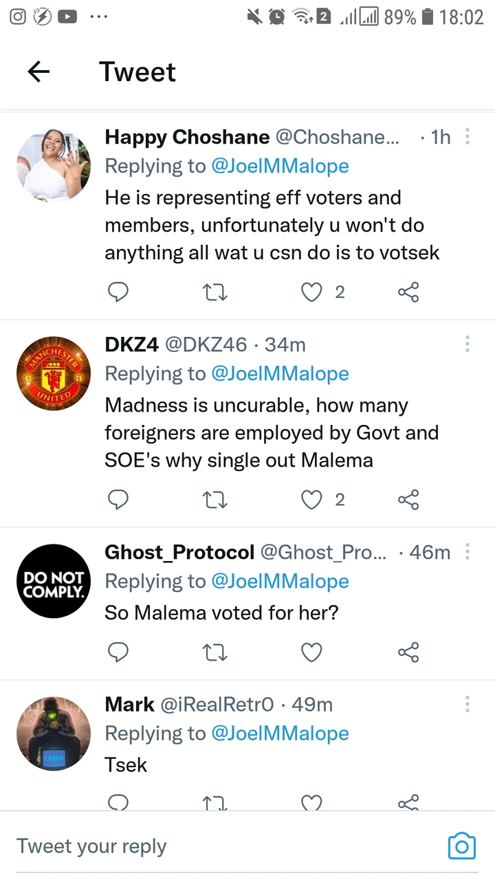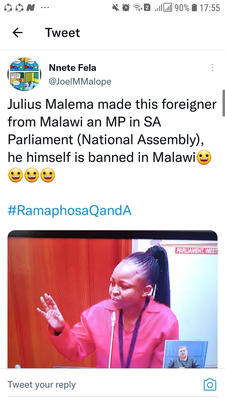 The MP concerned, who is now a member of the African EFF, says that she was elected from a ward in Malawi.