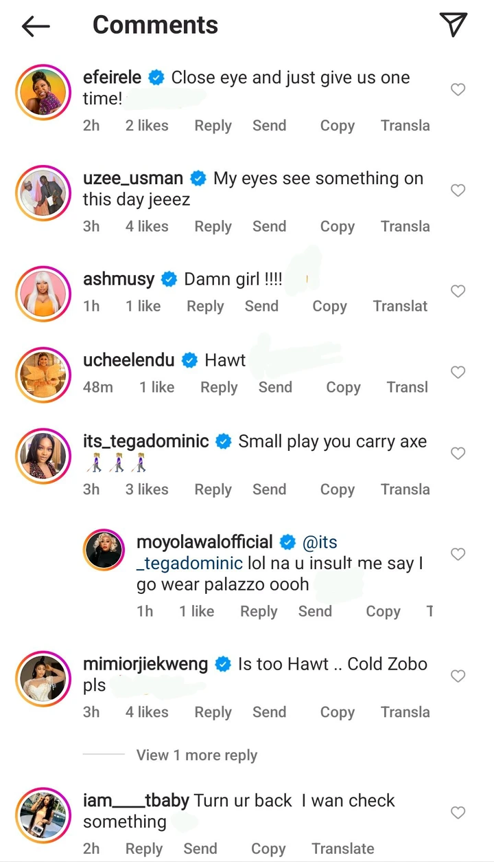 Moyo Lawal’s new post sparked several reactions online and some celebrities like, Efe, Rita Dominic, and others expressed their thoughts positively.