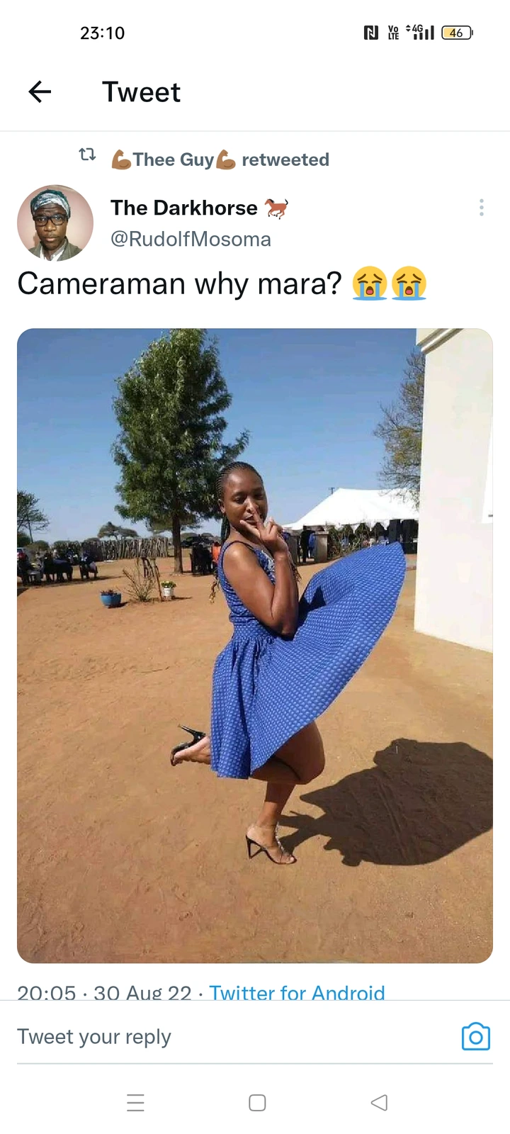 Which brings me to this lady, who seemed to be from an event judging by the tents and People behind her, but with that aside the main attraction was the dress on how the camera was able to capture this moment, and this caused a stir on social media