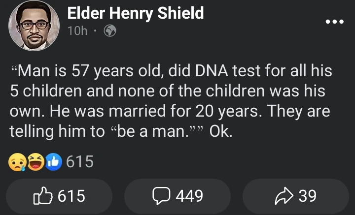 The story was shared on a Facebook page called Elder Henry Shield.