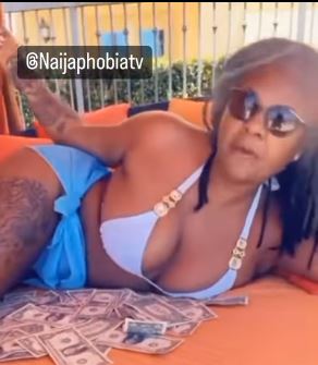 An old slay queen recorded herself sleeping on money while inviting young energetic to get it if they want.