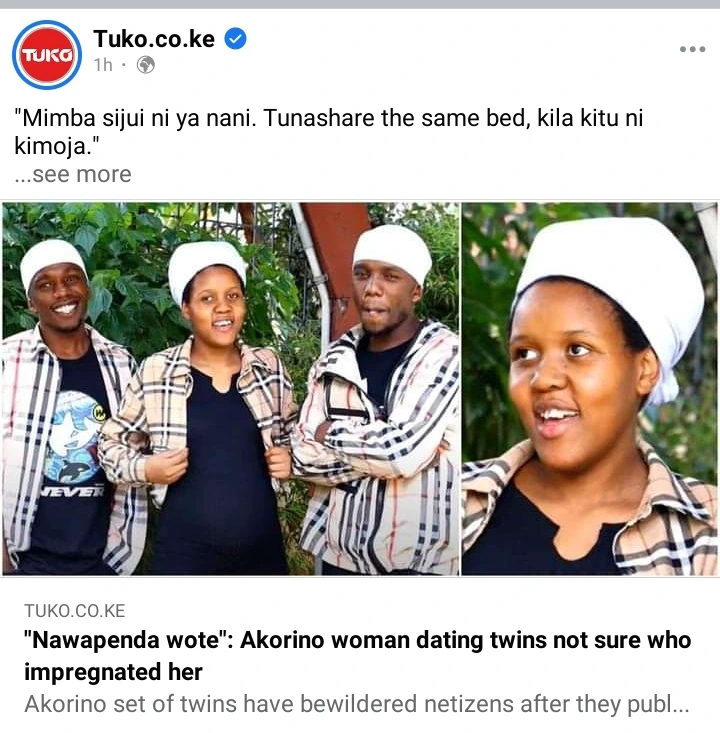 Emily, an Akorino woman causes a buzz among netizens after she disclosed that she is married to two men who are identical twins and that she is pregnant and expecting to have a child soon.