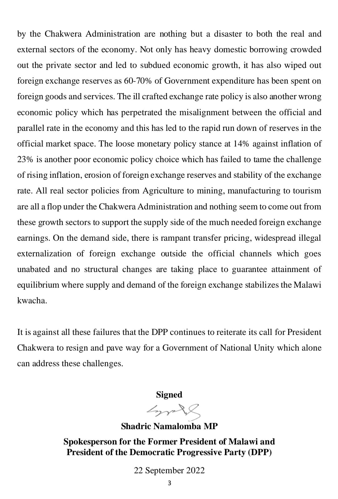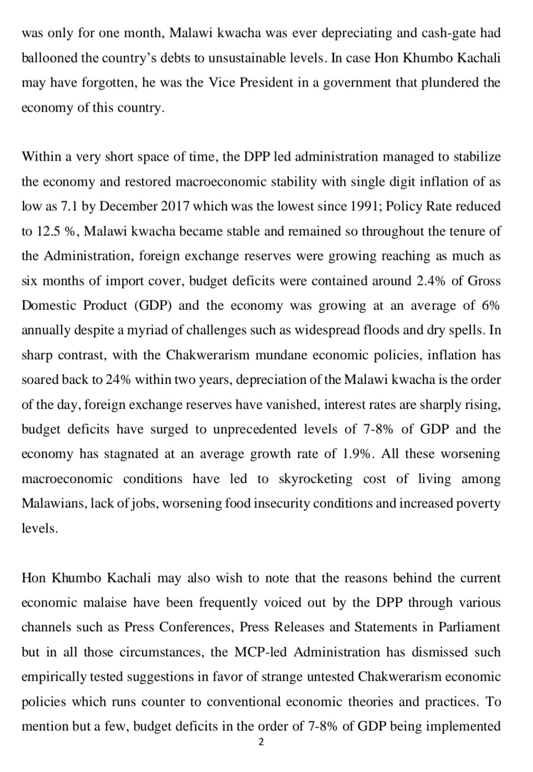 Former President Peter Mutharika who is also leader of the opposition Democratic Progressive Party has threatened to seek legal redress from courts against Former Vice President Khumbo Kachale over his alleged defamatory, malicious and damaging utterances