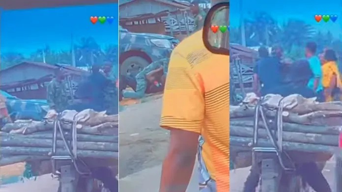 The Army man and his colleagues were accosting the policeman at a military checkpoint for reasons yet to be ascertained.