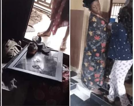 A heartbroken wife was captured driving her ungrateful husband away after she caught him red-handed on top of a girl in their matrimonial home.