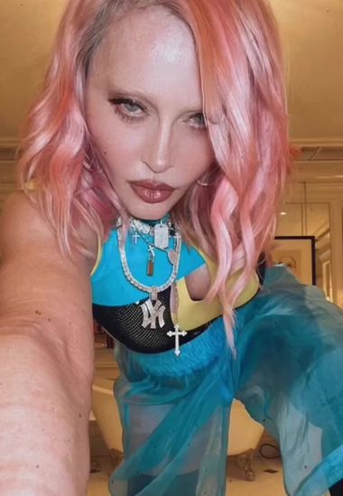 The 64-year-old Rebel Heart crooner had a very smooth face as she was completely wrinkle free. The star was made up perfectly with pink lips and bleached eyebrows.