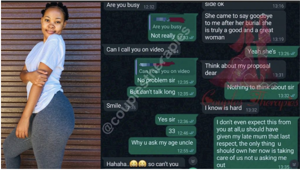 A lady has shared a chat she had with her stepfather who wants to begin an amorous relationship with her days after her mother’s burial.