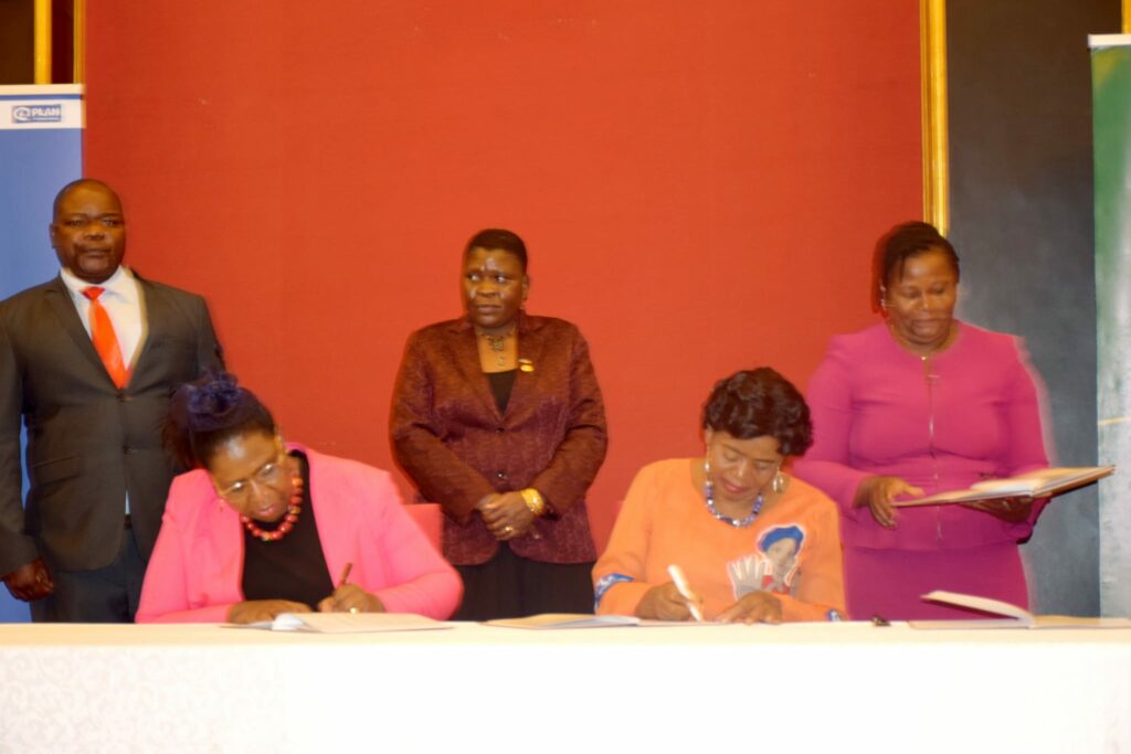 The signing agreement took place yesterday at Kamuzu Palace in Lilongwe where the Country Director for Plan International Malawi, Pheobe Kasonga and the First Lady signed the deal.