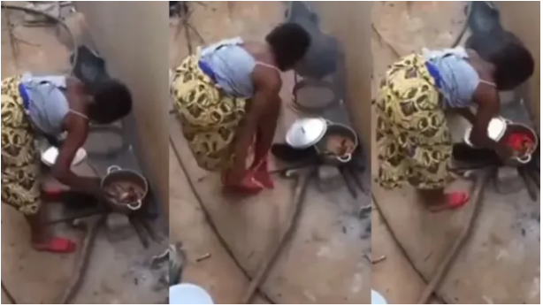 The moment the woman felt no one was watching her, she quickly removed her red undies and inserted them into a pot of food that was still on the fire and hid it under the hot dish.