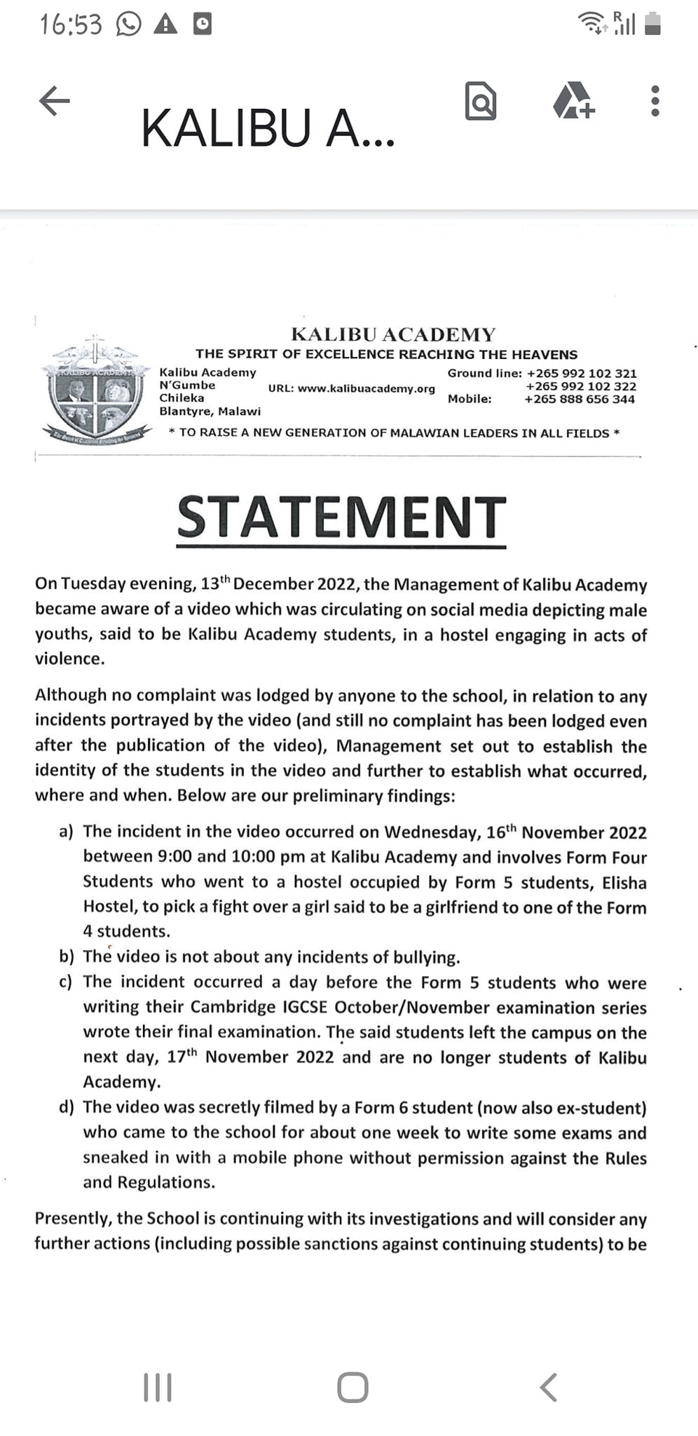 Kalibu Academy Private School has come out of the cocoon and comment on the alleged bullying video of students currently trending on social media.