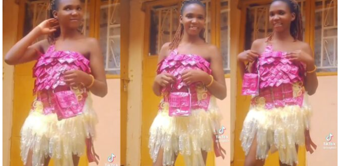 A young lady has landed in the books of social media trolls as she is being slammed online after displaying a bizarre outfit in a video.