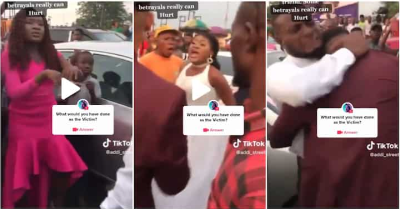 A video shared on TikTok shows people trying to hold the distraught bride as she confronts a lady believed to be her best friend.