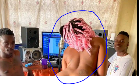Slay queen has left men salivating after she posted on social media completely n-ked while surrounded by two boys in a studio.