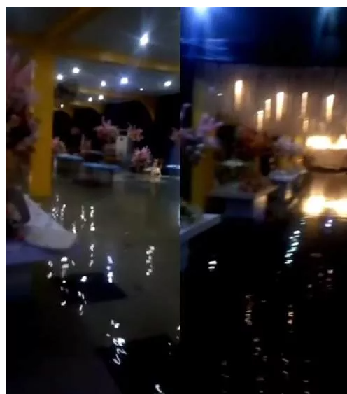 A viral video showed the well decorated hall located along Refinery road in Effurun, flooded with water.