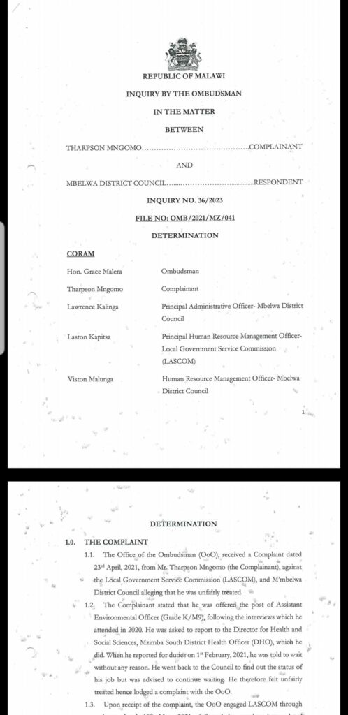 Ombudsman orders Mmbelwa District Council to apologize to Thorpson Mngomo