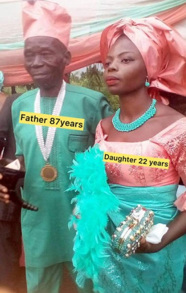 87 years old man marries his own 22 years old daughter 2 years after loosing his wife to death.