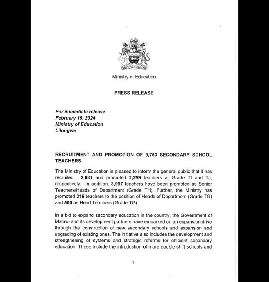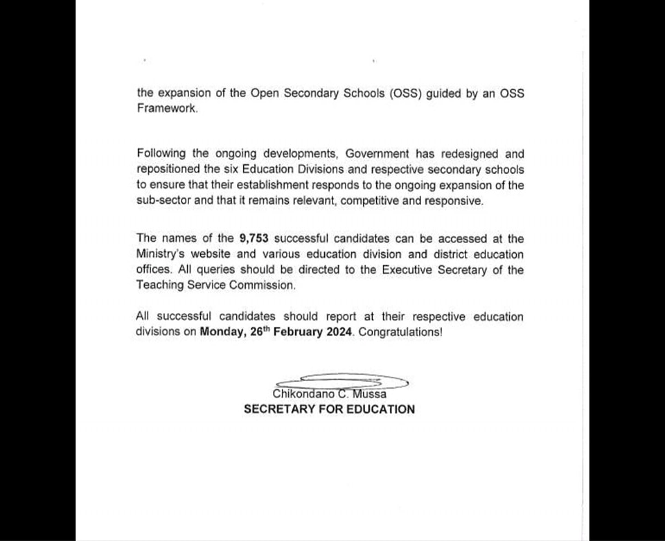 Ministry of Education spokesperson, Mphatso Mkuonera has confirmed of the development in a statement made available to this publication.