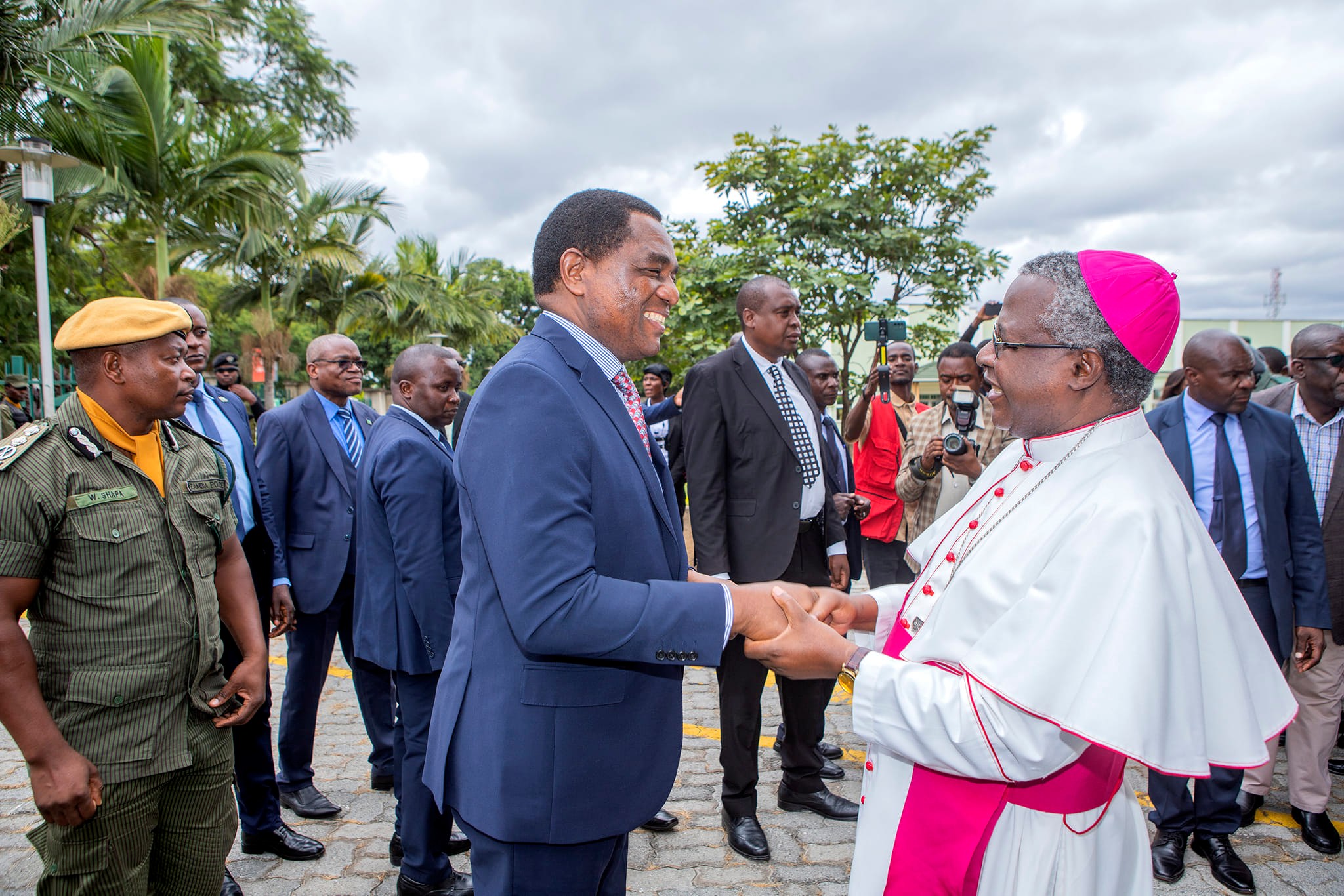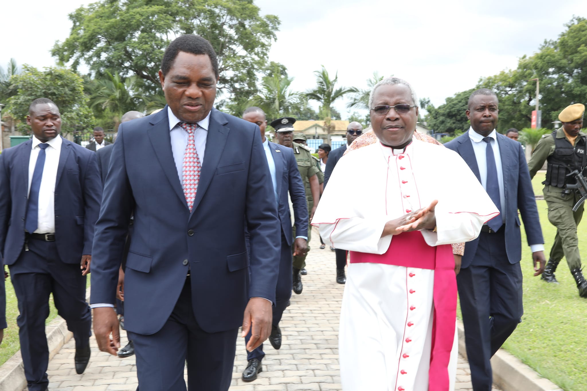 Zambia President Hakainde Hichilema on Sunday attended a catholic mass at the Cathedral of Christ the King in Ndola.
